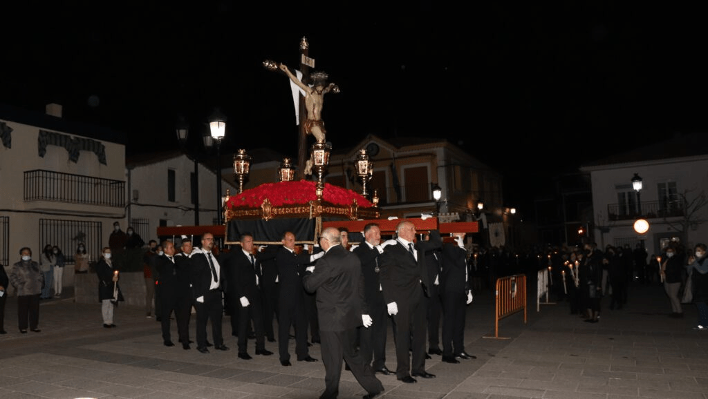 Por fin la mejoría de la situación de la pandemia que venimos padeciendo en los últimos años y el buen tiempo han permitido la memorable celebración de la Procesión del Viernes Santo. El Santísimo Cristo de la Misericordia iba galardonado con su habitual manto floral e iluminado por sus farolas, y así se lució por todas las calles de Villamantilla por donde discurría la Procesión.